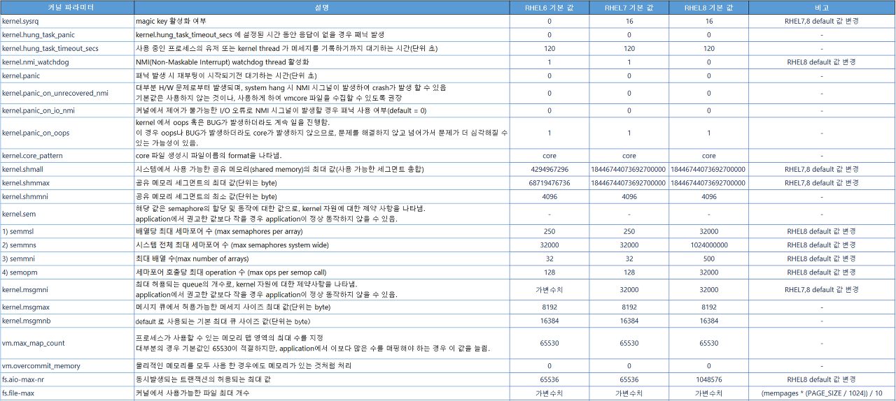 - kernel.shmmni : 공유 메모리 세그먼트의 최대 개수