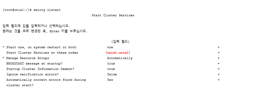 HACMP 시작