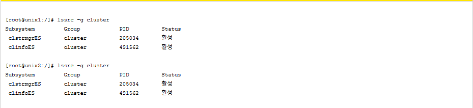 HACMP 기본 Cluster Process 확인