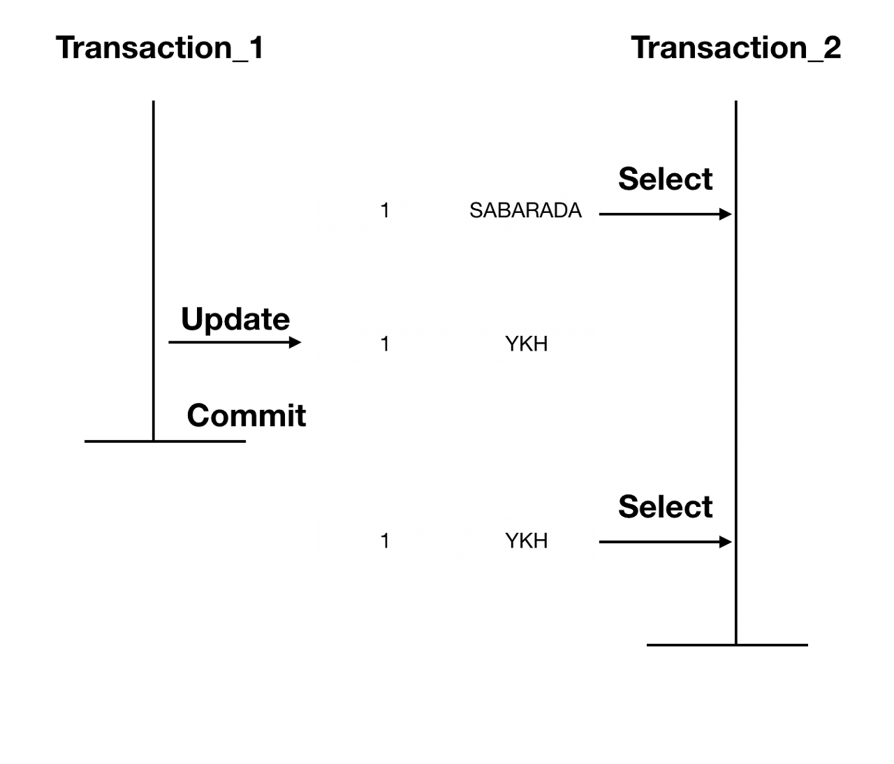 한 트랜잭션 내에서 같은 쿼리를 두번 수행했는데 그 사이에 다른 세션에서 수정 또는 삭제가 일어나 두 쿼리의 결과값이 다르게 나타나는것을 말한다.