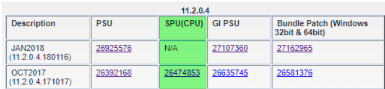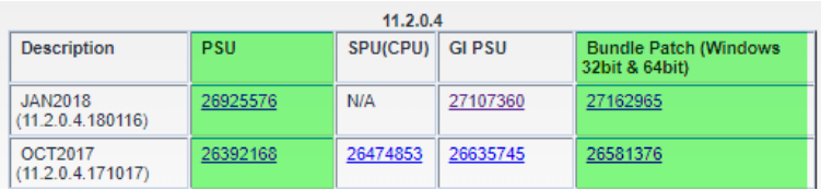 Assistant: Download Reference for Oracle Database/GI PSU, SPU(CPU), Bundle Patches, Patchsets and Base Releases (Doc ID 2118136.2)