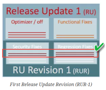 3개월 후 다음 RUR이 출시 될 예정이며, 이제는 새로운 보안 및 Regression 수정만 다시 포함 할 것 입니다. 이 시점에서 새로운 옵티마이저 또는 기능 수정이 추가되지는 않습니다. 위의 사진과 아래의 사진 (RUR-1 및 RUR-2)을 비교하면 초기 RU-1 에서와 똑같은 옵티마이저 및 기능 수정이 표시됩니다.
