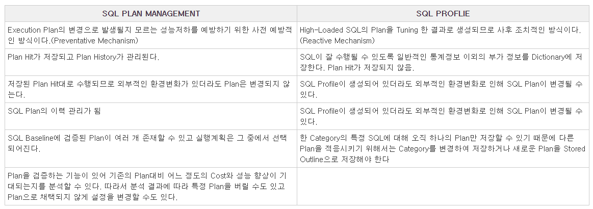 이로써 통계정보 변경이나 application의 수정, DB version upgrage 등으로 부터의 영향을 최소화 하는데 그 목적이 있다.