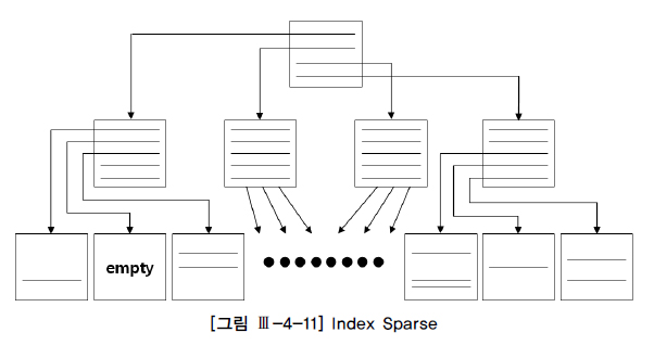 Index Sparse는 [그림 Ⅲ-4-11]처럼 인덱스 블록 전반에 걸쳐 밀도(density)가 떨어지는 현상을 말한다.