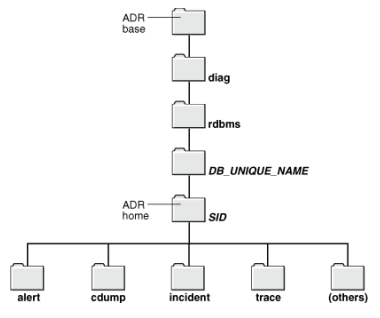 ADR은 Trace FIle, alert log, incident dump, core file 등을 찾을 수 있는 중앙 집중식 디렉토리 구조로 되어있다.