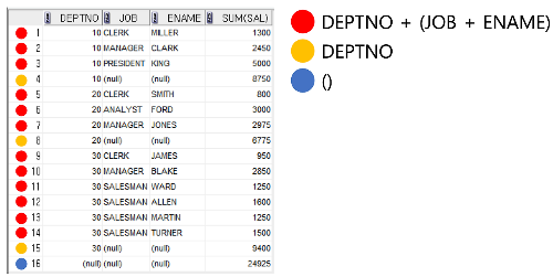 GROUP BY DEPTNO,ROLLUP((JOB,ENAME));